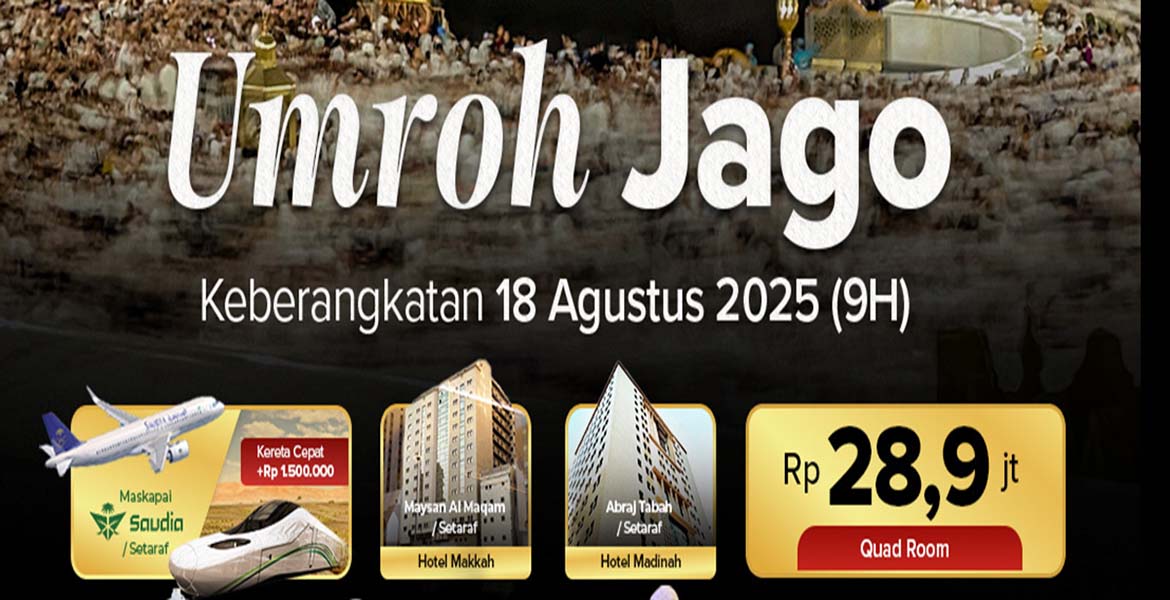 Keberangkatan bulan 26 Juni 2025 - selama 10 hari - Pesawat Direct PP - Hotel Bintang 4 - Jarak Hotel kurang dari 500 meter - Fasilitas Terbaik - Free Tahalul - Free Kereta Cepat - Manasik 5x - City Tour Madinah & mekkah. dengan paket Umroh Reguler,