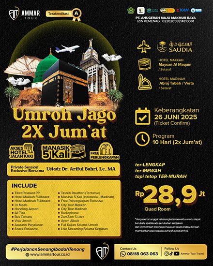 DP UMROH HANYA 3 JUTA AJA LHO!! Kuota Terbatas! Yuk, Daftar Umroh Juni 2025 Sekarang! Hubungi AmmarTour sekarang juga